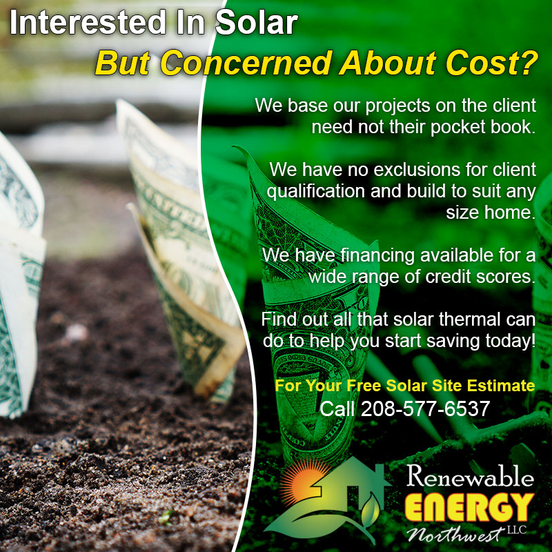 These are all things we hear when people want to down talk solar and fact is when it comes to solar THERMAL these things are even less of a concern! Fact is, solar thermal from Renewable Energy NW has one of the fastest paybacks of any alternative energy; best of all you will see immediate return in the form of lower energy bills even before the system is paid off!